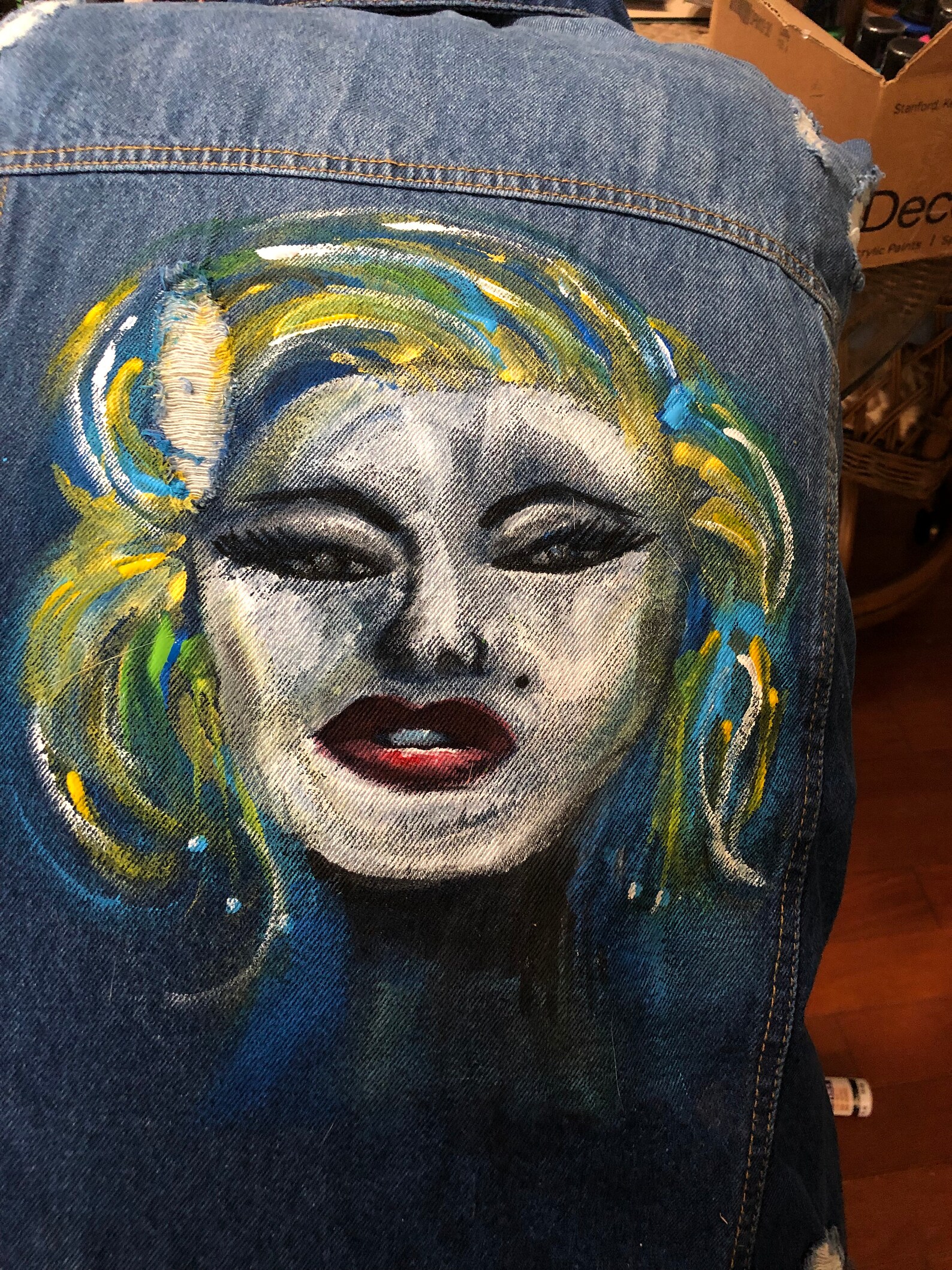 Abstract Marilyn Monroe on a oversized distressed denim jacket by Michele Volpe Women’s size Large. I’m a big Marilyn Monroe fan and wanted to paint something different on this jacket. I decided to paint her in an abstract style with multicolours. The imperfections in scale are deliberate. I was trying to capture her essence rather than doing an actual portrait. I painted my design on a distressed oversized denim jacket keeping to complement the abstract style. The jackets are very roomy and can easily accommodate layers of clothing underneath. This jacket is perfect for any Marilyn fan! It looks great with jeans, Midi dresses or any casual clothing. By adding extra layers you can stretch the wear into colder seasons. I hope you enjoy my work!